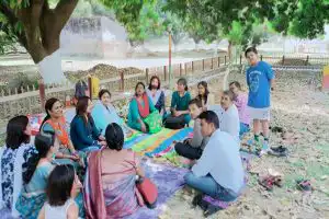 During one of the brainstorming sessions with the Nature Classrooms team on the manner in which they could manifest these reflections into practice, they came up with the idea of taking teachers out on a nature picnic. This idea was a pioneering attempt at moving away from traditionally established ‘teacher training programs’. Usually teacher training programs involve an expert who would deliver content and methods to an audience of teachers in a formal space. The nature picnic solely focused on providing the teachers an experience of interacting with nature for their own sake.